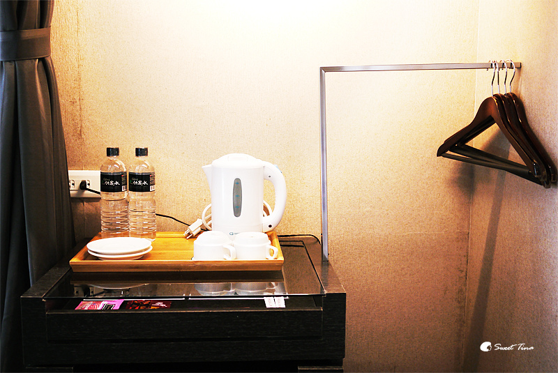 房間內側提供了一個簡易的掛衣架及茶水間。