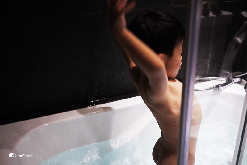 是說既然有沐浴鹽當然要來泡一下澡囉,其實我們渡假時還滿喜歡全家一同泡澡的,是很放鬆的親子互動呢!