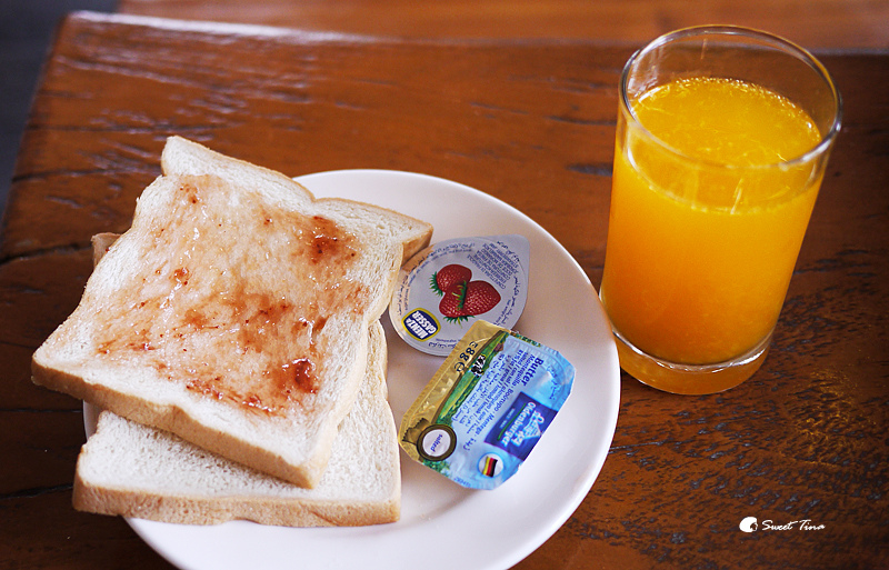 瑋兒則是選了他最愛的草莓抹醬麵包,再搭上一杯柳橙汁~