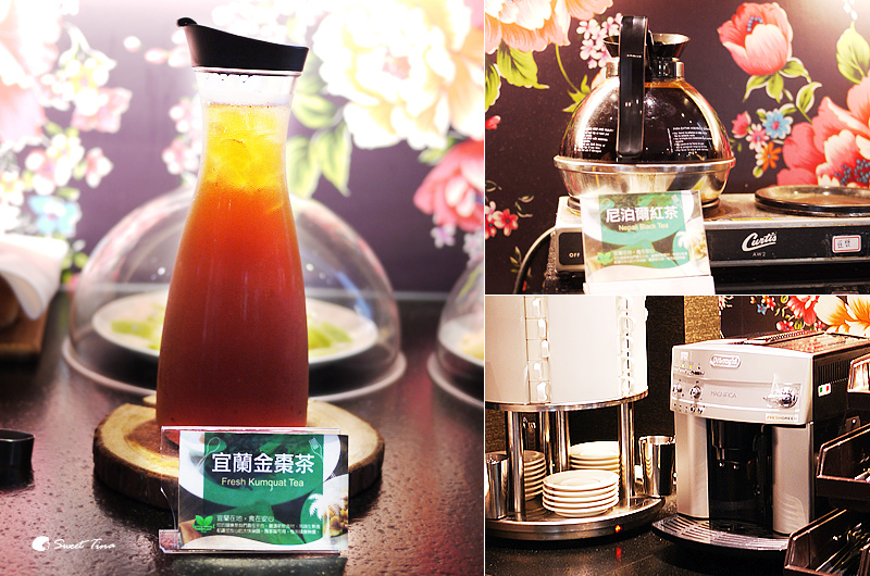 飲品的部份提供了宜蘭金棗茶,滿爽口清甜的,另外還有現煮咖啡、尼泊爾紅茶。