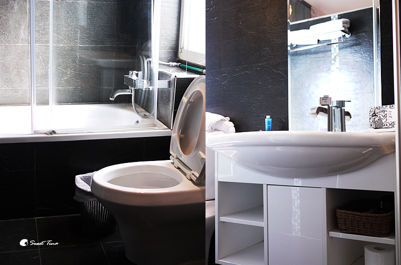 而浴室雖然有門,但是透明的,一整個好適合情侶哦(羞),浴缸上還有小玻璃門作乾溼分離的區隔,整體的感覺還滿乾淨有質感!