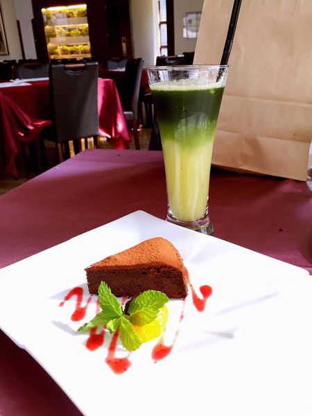 巧克力帶點苦味 可可味很濃郁 搭配一旁薄荷葉