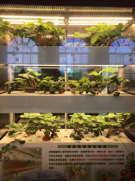 1. 科技化周年生產栽培系統:讓民眾近距離感受科技化農業成果 目前種植三種品種草莓及香藥草作物
