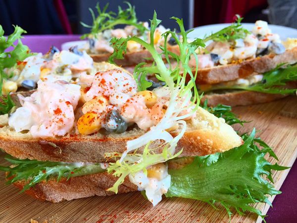 這道法國金棍奶油燻鮭魚 也是酥脆Q彈的法國麵包為基底