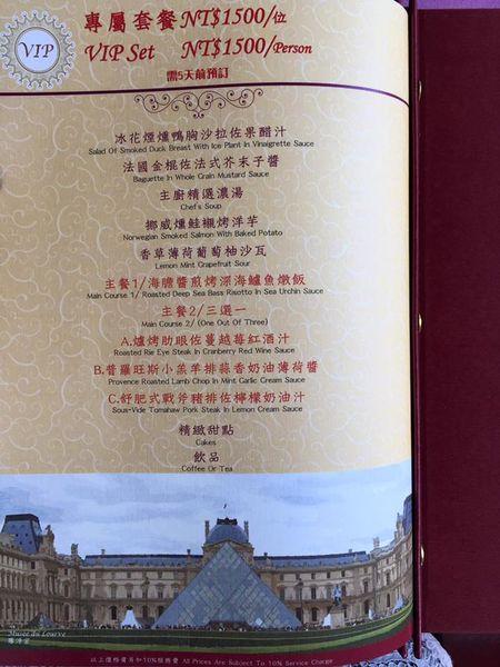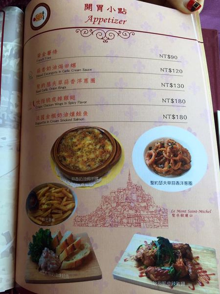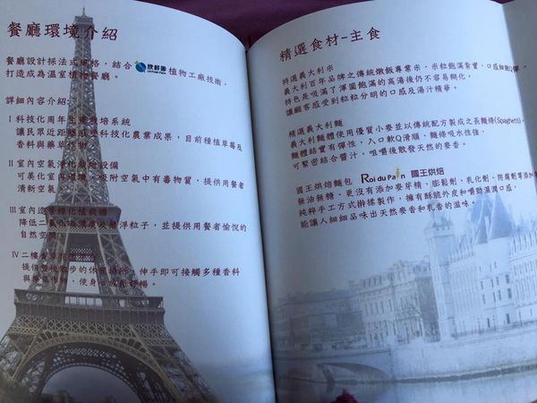 ▼菜單超美的!還印有巴黎鐵塔 右手邊那頁有著淡淡的香波堡