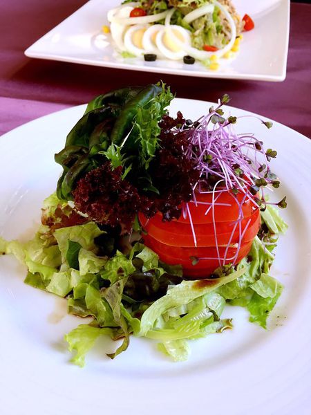 水耕沙拉加上紅色蕃茄起士塔