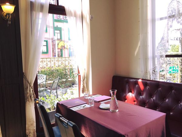 可邊用餐邊欣賞窗外的小花園