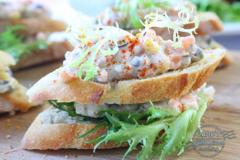 法國金棍麵包烤得香脆,與燻鮭魚丁的軟香,