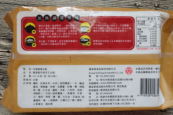 水餃的包裝完整仔細,上面還有製造日期和有效日期,消費者可以很清楚地了解各項產品資訊,然後背面有煎、煮、蒸、湯的調理方式和注意事項讓大家吃餃子有不同料理方式來做選擇。