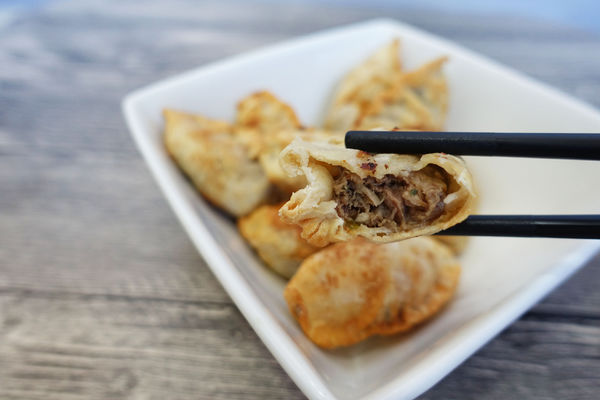 水餃皮炸非常酥脆,一咬開,肉餡味道撲鼻而來,咬的時候還可以聽見像餅乾的聲音,非常棒,牛肉餡部分裡面帶有點肉汁,吃的到牛肉的香氣和蔬菜的甜度,味道不錯。