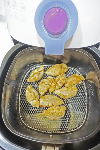 氣炸後的餃子胖胖的超可愛~因為氣炸過,香氣更濃郁,表皮也不硬