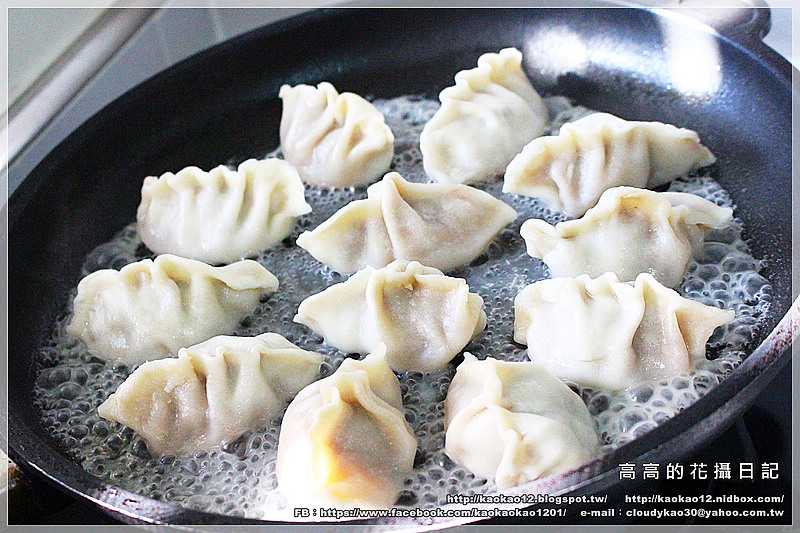 這是煎一半時偷偷打開蓋子來看一下餃子的情況,可以看得出來餃子有略為膨脹了。