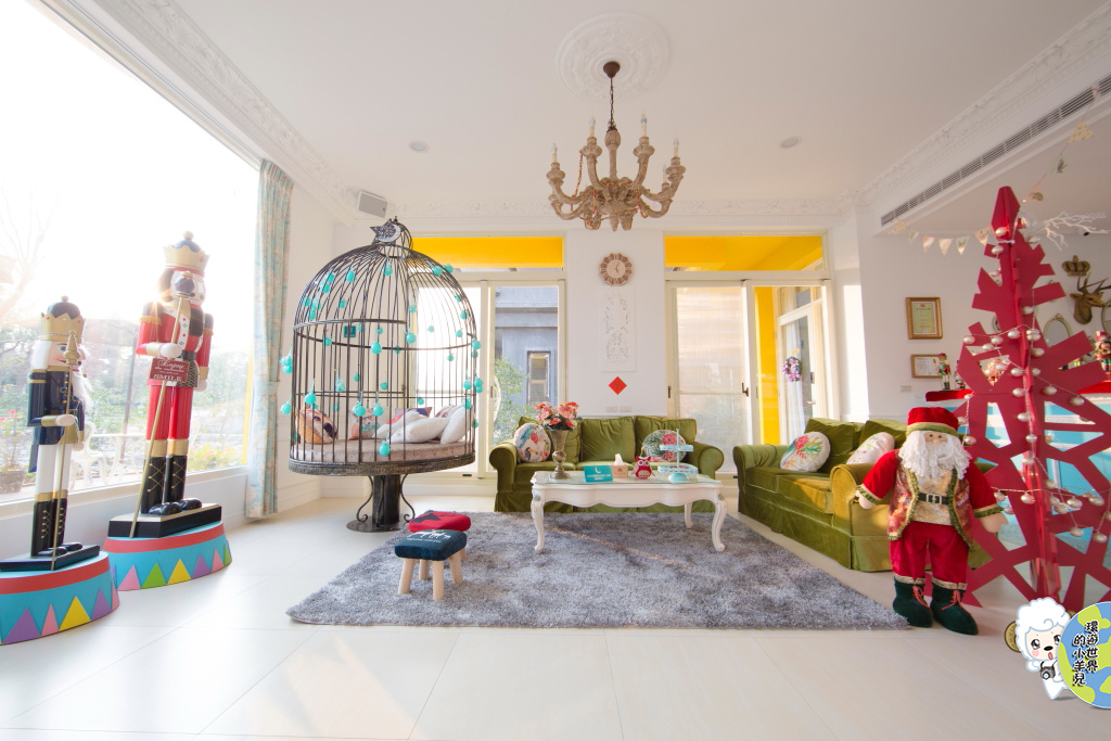 許多異國風情的擺設,還有大鳥籠的沙發區、幾座大型的胡桃鉗,