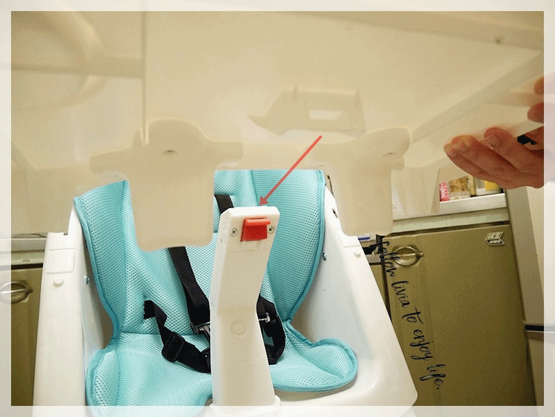 如果要讓寶貝跟我們一樣的高度吃飯就得把原有的兒童餐椅綁在我們大人坐的椅子,