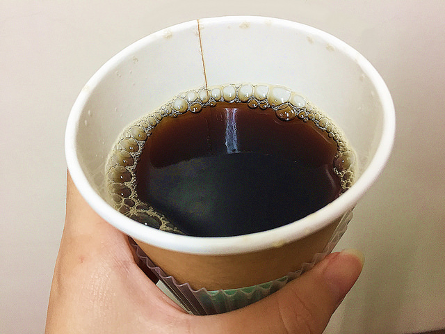 外帶杯外套著一層透明杯套,輕鬆拿著走不燙手