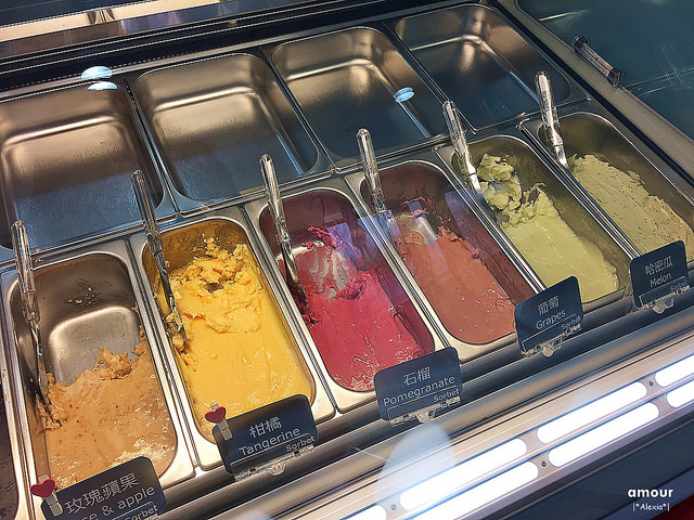 除了芝麻牛奶、香草牛奶和巧克力外,其他水果口味都是Sorbet