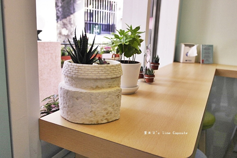 粉嫩的湖水綠和嫩嫩的粉紅加上綠植所創造出的小小店面就靜靜矗立在這裡,
