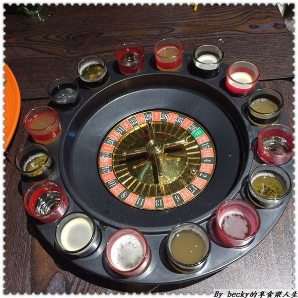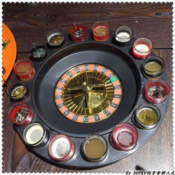 在同時,隔壁桌的客人人數較多,所以店家端上了炒熱氣氛的輪盤酒(朋友去借拍),他們還輪流挑選味道呢!這個非常容易HIGH起來。