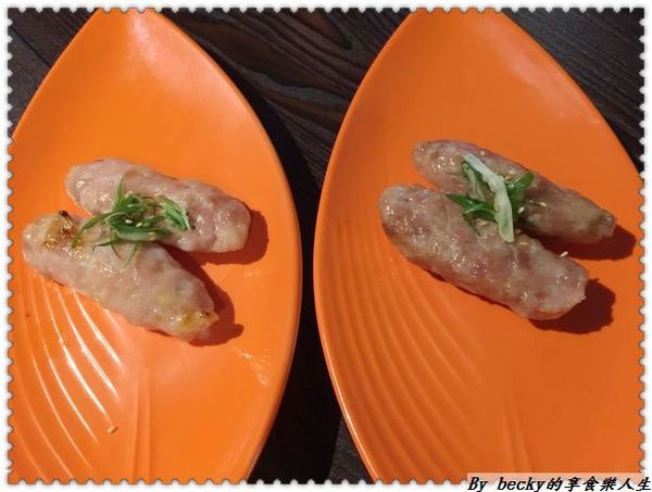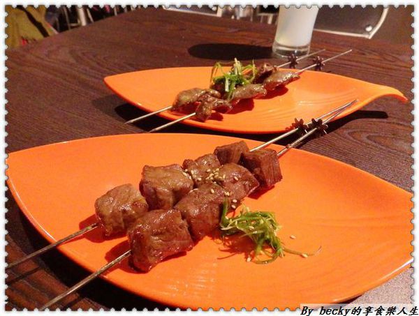送上桌後有些訝異,我們一直以為豬肉串及雞肉串是串燒方式,結果竟然是一條一條的,豬肉串吃起來蒜味重,帶有肉汁,雖然有咬嚼,不過有些過鹹。