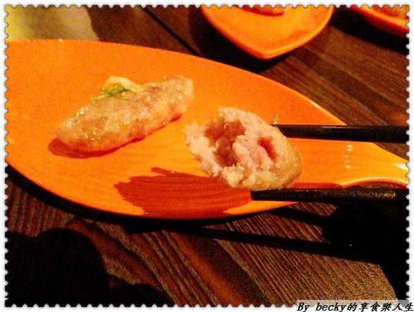 這個豬肉切片蠻厚的,咬了一口非常紮實、有嚼勁,咀嚼帶些肉味,有些Q彈。