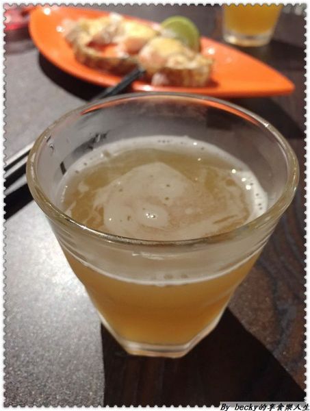 在吃同時~店家招待了店裡人氣旺的芭樂啤酒~這個是女生很愛的啤酒之一,因為芭樂味重,只帶有少許啤酒味,個人認為很像芭樂汽水,誰叫我是號稱酒鬼咧!!「未成年請勿飲酒」