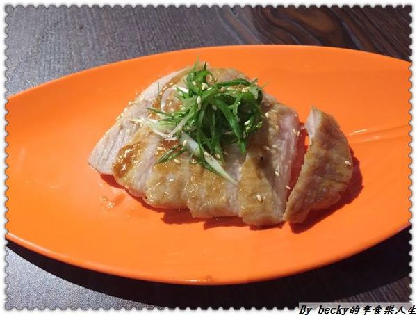 雞腿肉(NTD100):這個雞腿肉烤的剛剛好,肉質鮮嫰多汁,咬起來很有彈性,這個肉質真的很好。