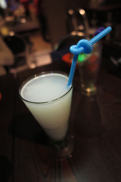 裡頭放了愛心閃爍LED燈,很有氣氛。味道就像喝果汁一般,帶點淡淡檸檬果香,甜甜的,連不會喝酒的S也沒法抗拒。