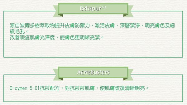 還添加了抗痘成分、天然植萃複方因子,使肌膚恢復清晰明亮: