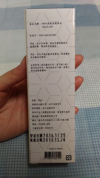 100%角鯊烷精華油的全成分、用法及有效日期等。