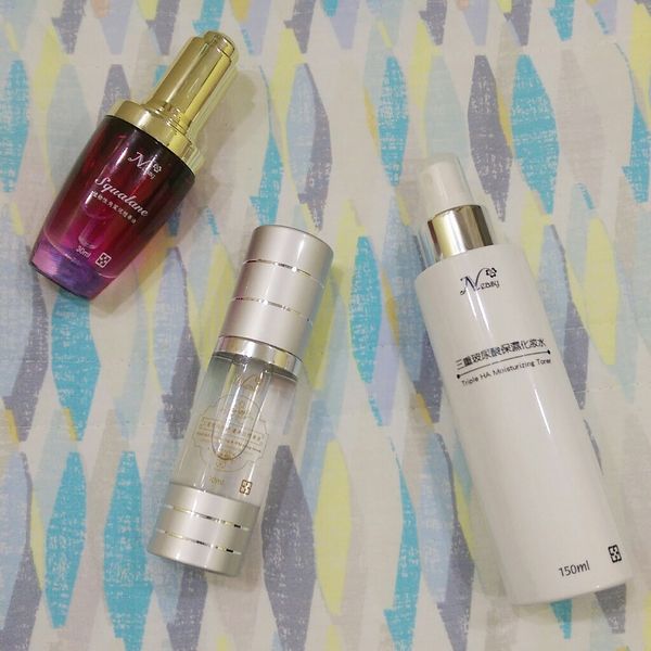 這次體驗neasy的日本三重玻尿酸保濕化妝水、精華液、角鯊烷精華油,