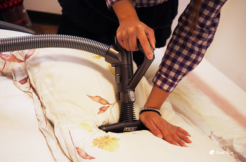 之前也有使用它牌的除過塵蟎,但看見職人仔細的吸床後,我才發現原來我根本就是亂吸XD,每一處都要用力的按壓才能吸到最深層,光一張床,二個枕頭、一條棉被就可以花上一個小時,真的需要費不少勁呢!