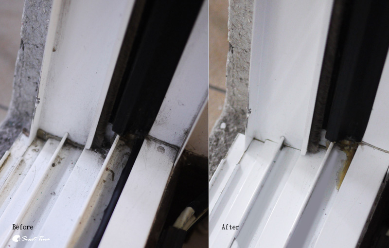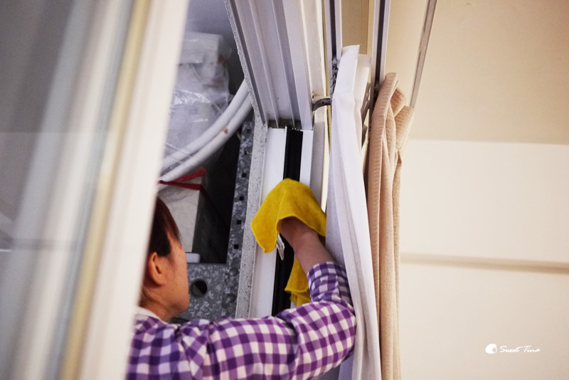 【客廳清潔】比較需要加強的地方,就是落地窗了,溝槽縫隙就是我們平日比較不會特別去清理的,所以是最需要花時間清理的。