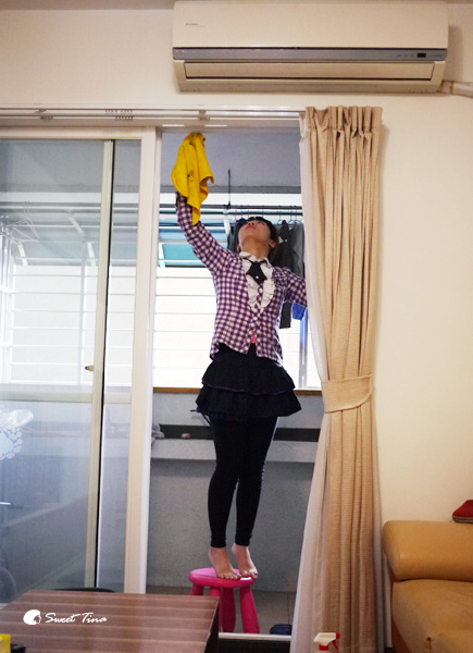 居家清潔做到一塵不染,真的是有難度的,就算是家庭煮婦,照顧孩子都精疲力盡了,哪來的精神啊,只能求「看起來」乾淨或是整齊就不錯了呢! 像Tina家最大的問題就是風還滿大的,所以一星期下來灰塵就不少了,每星期一定要東擦擦西擦擦外,平日也要出動空氣清淨機,但~較細微的縫隙,或是太高的地方就..........過年再來處理吧XD。