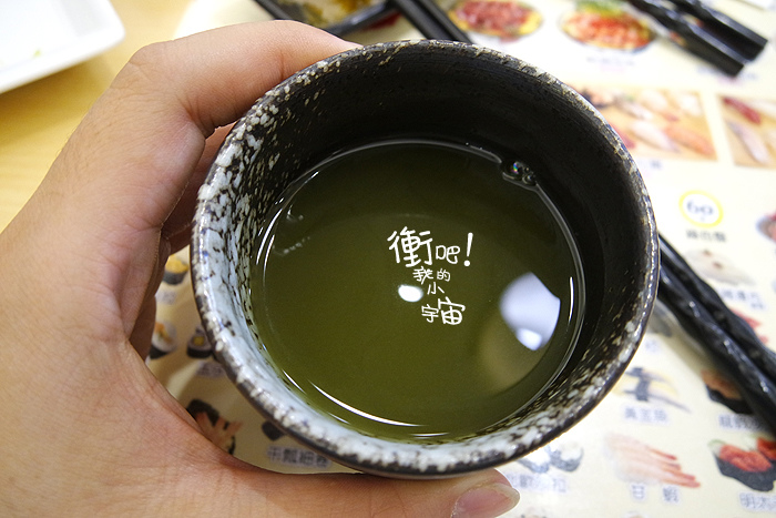 一坐下來,店員就會幫你倒上一杯熱抹茶,一般的迴轉壽司提供的通常都是麥茶或是綠茶