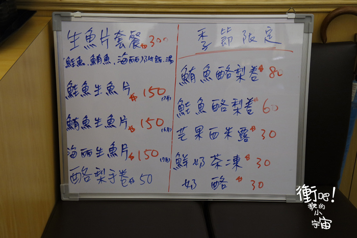 每個座位區上都有放置菜單,可以很清楚價位跟菜色