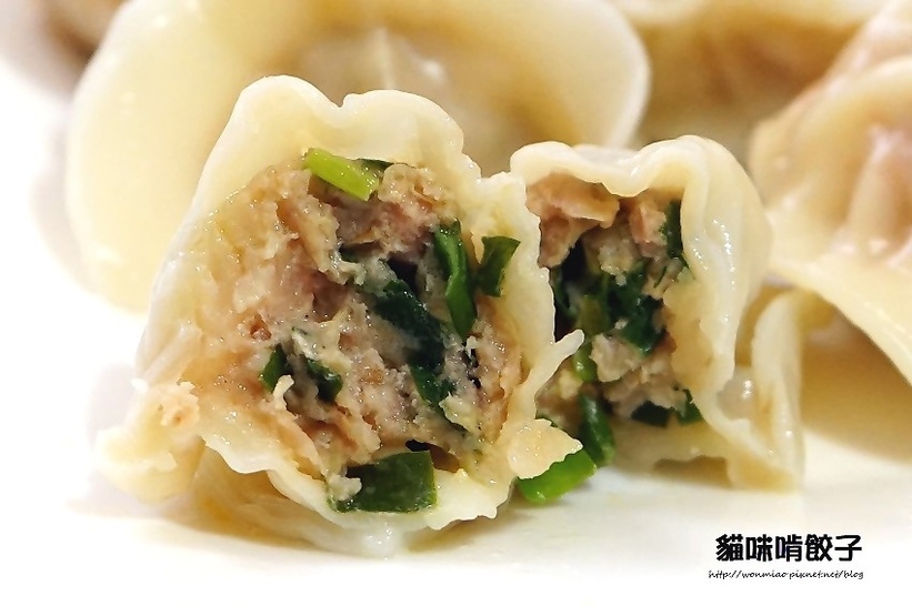 內餡飽滿紮實,看起來肉菜幾乎各半的韭菜水餃,