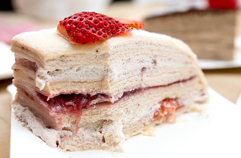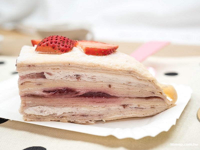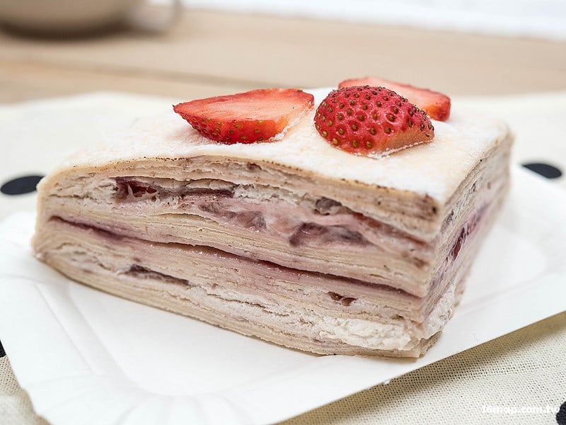頂層的千層皮超薄超軟~使用了新鮮草莓以及自製草莓醬當作餡料做成!!