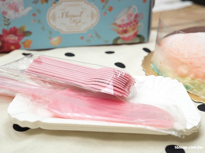 刀叉都是粉紅色的!! (根本像是童話故事的甜點嘛!!)