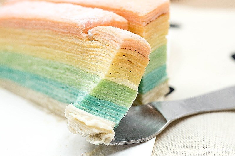 比別人多了五層的彩虹千層蛋糕~光看就覺得好夢幻喔!!~怎麼捨得切下去呢!!