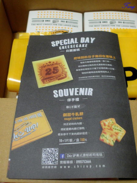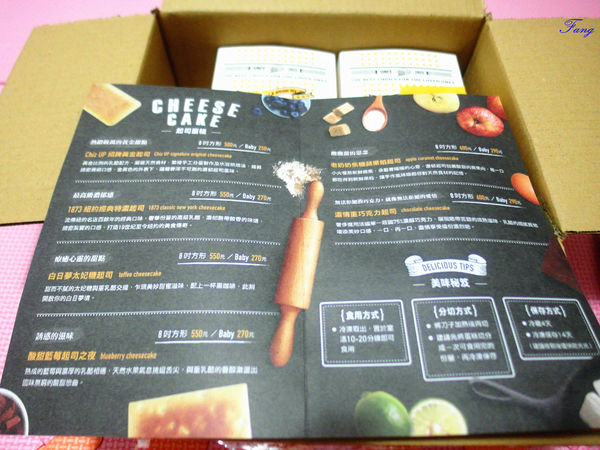 最上方是DM,詳細介紹各款蛋糕價格及口感,也介紹店家相關資訊。