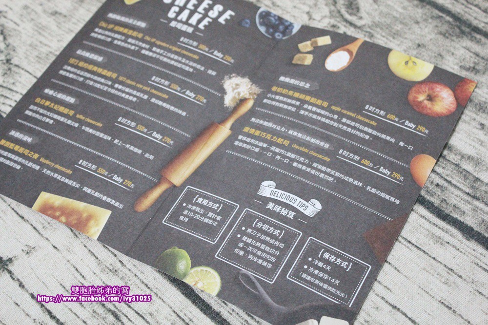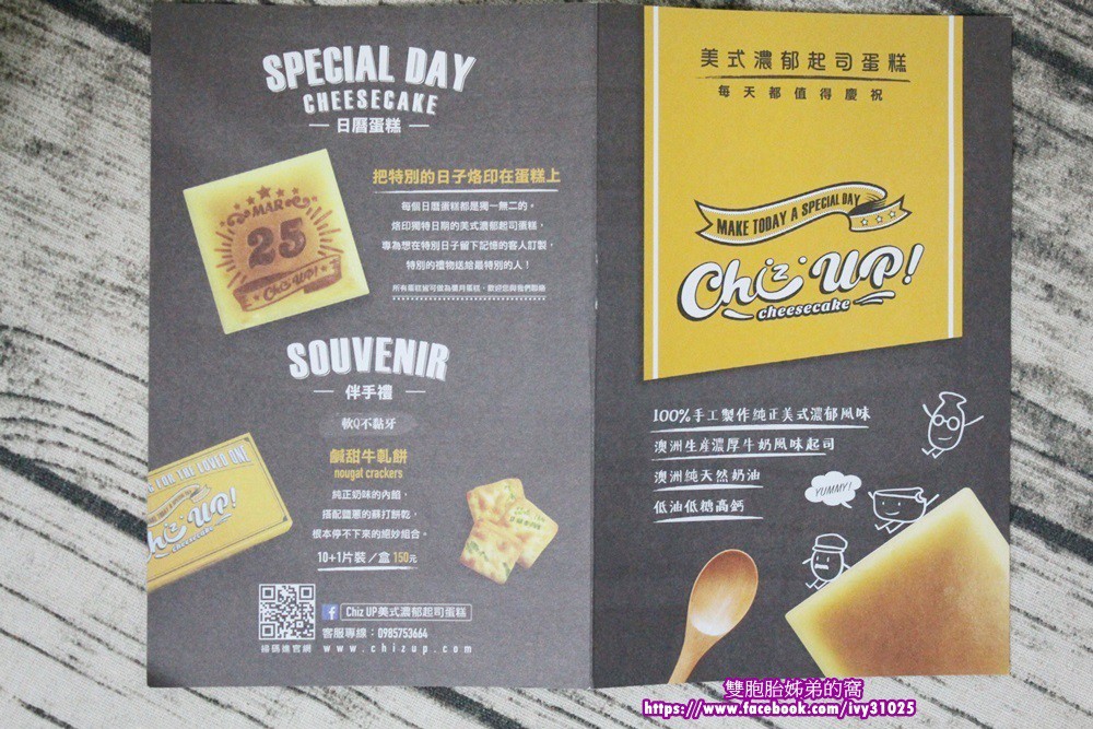 目錄裡面有介紹ChizUP各款起司蛋糕及特色、價格,還有