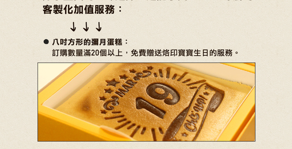 可以烙印上寶寶的生日 讓蛋糕成為獨一無二的彌月蛋糕