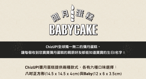 ChizUP!的蛋糕有分日曆、8吋方型跟BABY蛋糕