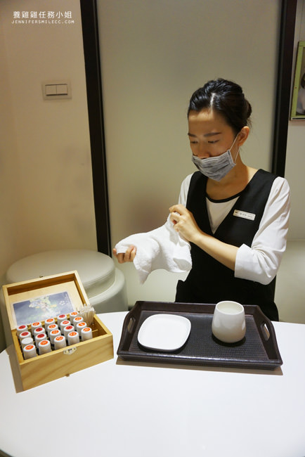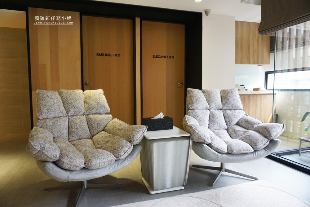 我是有預約的,所以一進門其實小姐就會問是不是XXX小姐了,那種感覺好像很熟悉,卻又帶著小小的尊榮的那種感覺,很微妙。整個會館非常的安靜,放著輕輕的音樂很舒服。裝潢部分用黑色、白色、木頭色為基本調,我很喜歡這種裝潢,以後買房子也要copy一下 :-)