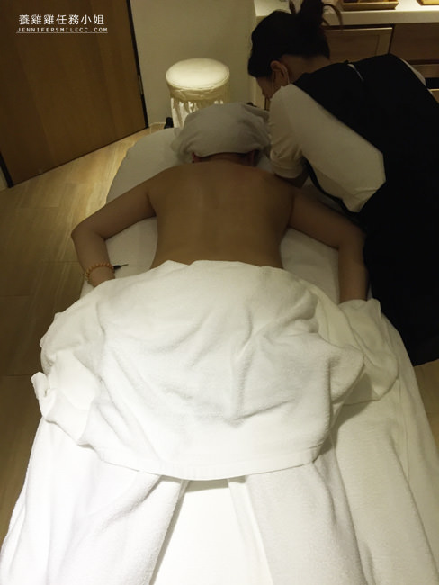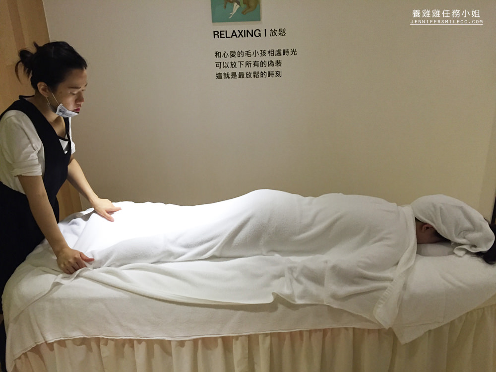 接著Jamie準備好後,她給了我一個靠枕放腰部和頸枕放脖子上,這是他們自己做的豆豆枕,熱呼呼的,放在身上好舒服。 我還笑說我好想買這個枕頭,因為真的太好用了啦!女生生理期應該很適合放在腹部。