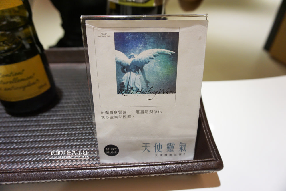 Jamie也和我說,等等我們的房間幫我挑選的是『天使靈氣』這個音樂,輕輕柔柔的、軟綿綿的,就像是在雲端上走那樣。我本來不是很理解,但是後來一走進房間裡面的時候就完全明白了。