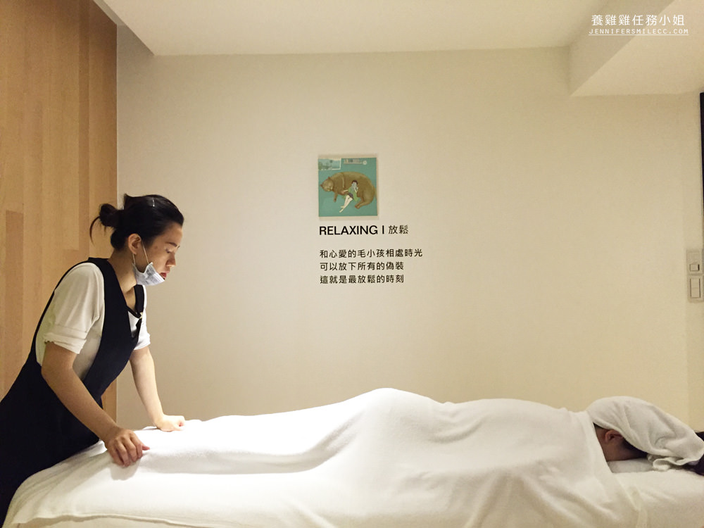 更換衣物後,Jamie進來房間裡面幫我準備足浴的器具,我出了房門繞繞,發現這邊的房間都有不同的名稱,據說裡面的色系也完全不同。我今天使用的剛好叫做『放鬆|Relaxing』,哎呀怎麼那麼鬆啦~好開心唷!