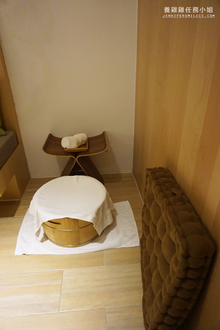 Jamie把空間留給我換上浴袍,我環顧了一下房間,發現了角落的足浴盆和天使椅上的毛巾。這也是我第一次在房內做足浴呢!