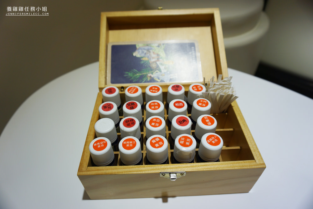 其實一進門,桌上這盒精油就非常吸引我的視線。依蘭雅閑非常特別,芳療師會讓你用抽排的方式,有點趣味的、占卜的方式帶出你現在的心理狀態,抽出屬於自己的精油。而這20多支精油都是屬於複方的精油。