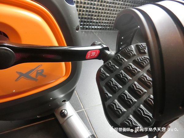 很特別的是,它的腳踏板是有分左右兩邊的喔!原來是特別設計的彎曲化曲柄,可以防止因踩踏時腳踝關節骨太接近機殼及曲柄而可能產生的碰撞,也太貼心了吧